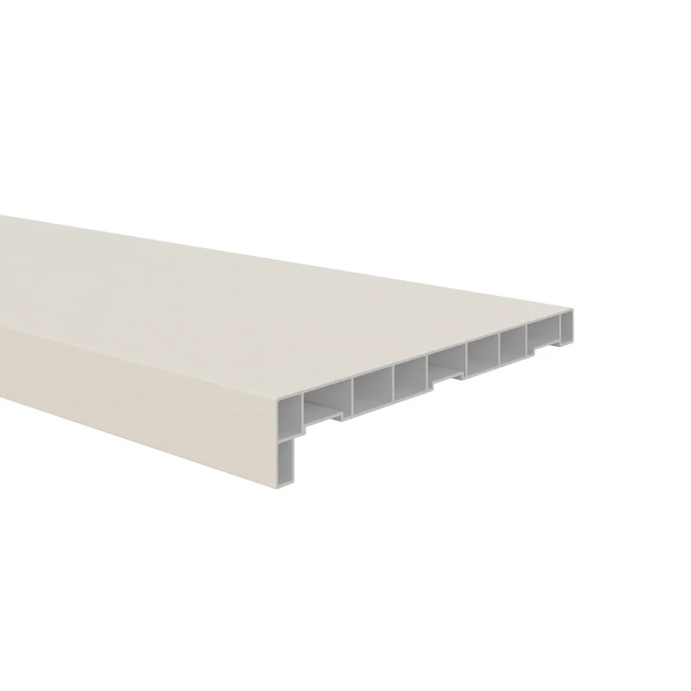 Bovendien is de vensterbank aan beide zijden te gebruiken, met een brede of smalle neus. Dit biedt extra flexibiliteit bij het installeren van de vensterbank en maakt het mogelijk om deze aan te passen aan de specifieke eisen van de toepassing.