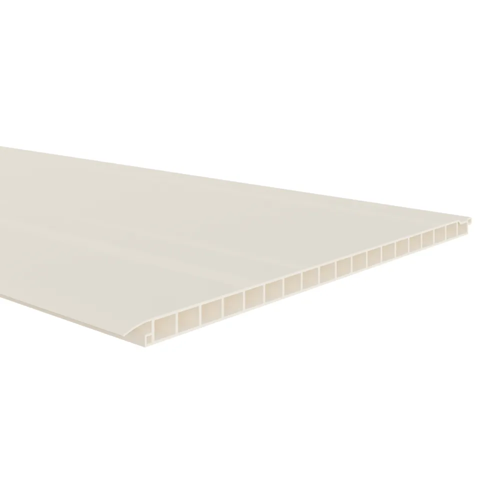 Het vlak kunststof paneel met een afmeting van 250x10 mm is een uitstekende keuze voor het afwerken van jouw plafond of overstek. Deze holle schroot is gemaakt van pvc en biedt een lichtgewicht en gemakkelijk te installeren oplossing. Het paneel is verkrijgbaar in verschillende kleuren en geeft je interieur een strakke en moderne uitstraling. Daarnaast is het vlak kunststof paneel onderhoudsarm en bestand tegen vocht en schimmels, waardoor het langdurig meegaat. Met deze hoogwaardige afwerkingsoplossing hoef je je zich geen zorgen te maken over schilderen of onderhoud, wat je tijd en geld bespaart.